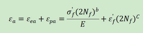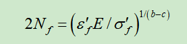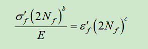 由上图弹性应变幅值和塑性应变幅值与寿命的关系,可定义疲劳寿命公式为: