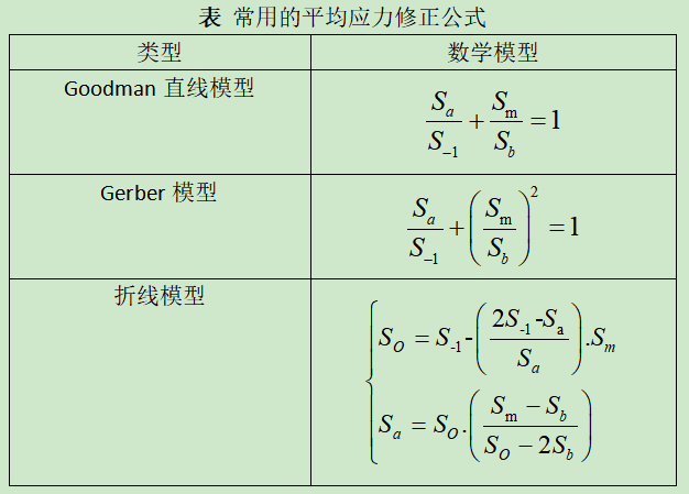 表 常用的平均应力修正公式