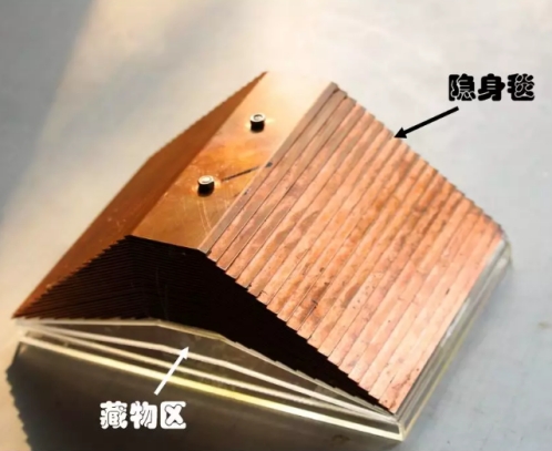 隐身毯由一层一层互相分隔的黄铜板组成,毯下有一个梯形的小空间,需要隐藏的目标物体就放在这个区域。覆盖在目标物体上的隐身毯,可以对周围的声波进行引导,使原本凸起的目标物体显示出平面的回波效果。敲黑板,最终效果就是:原本凸起的物体在外界看来就是一块平地。