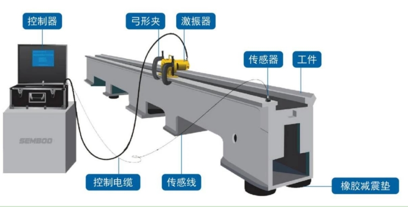 振动时效的实质是以振动的形式给工件施加附加应力,当附加应力与残余应力叠加后达到或超过材料的屈服极限时,工件发生微观或宏观塑性变形,从而降低和均化工件内的残余应力,并使其尺寸精度达到稳定。