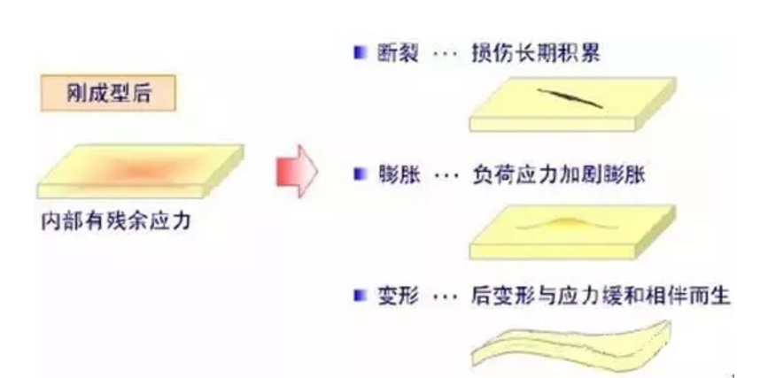 有点晕?那换个通俗的方式跟大家讲。比如说一个人之前很瘦,买了一条L号的牛仔裤,然而过了个年吃成了大胖子,这时候再穿这条牛仔裤,由于人长胖了而裤子没变,因此他就会觉得裤子太紧了,这时候身体与裤子之间就有了很强的作用力,如果用力过猛很容易把裤子撕破,这种破坏力就是残余应力的作用效果。