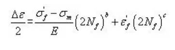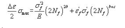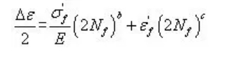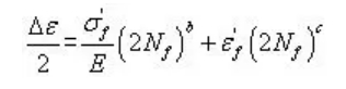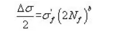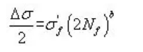 用于分析单轴数据,应力幅用于计算疲劳寿命。单轴数据在实际问题中出现较少,通常推荐采用多轴算法。这种算法可通过S-N曲线和使用局部应变材料数据来完成,当使用局部应变材料数据时,疲劳寿命曲线由下式确定: