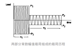 假设该载荷历程不断重复,直至零件破坏。实际的疲劳分析要求能计算承受各种不同幅值的复杂载荷的零件的疲劳寿命。