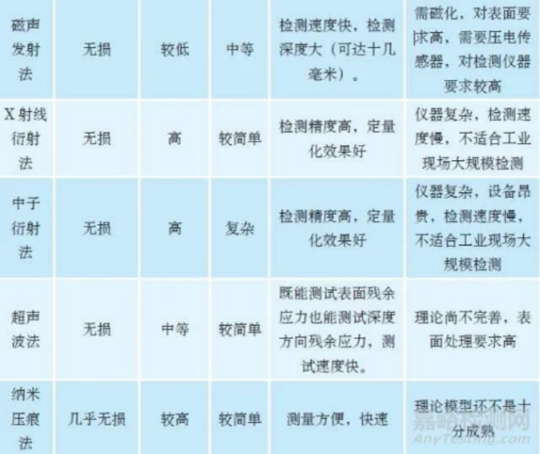 2、常用应力测试方法比较