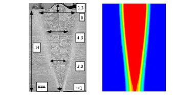 电子束焊接温度场模拟结果与实际坡口对比图