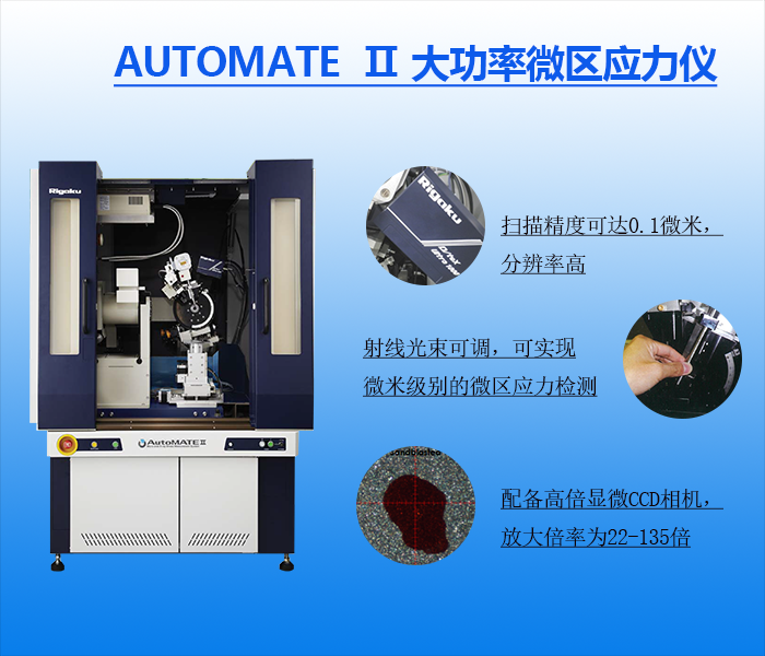 AutoMATE Ⅱ型应力仪是实验室专用的高精度、大功率、微区应力分析仪。检测精度能够达到±5MPa,能够对小至30微米直径区域进行微区应力分析,尤其利于对小型零部件实现快速、高精度应力分析。此外,其配置高功率且可更换式射线源,能够满足几乎所有常见多晶体金属材料的应力分析和残余奥氏体检测。