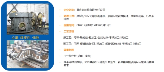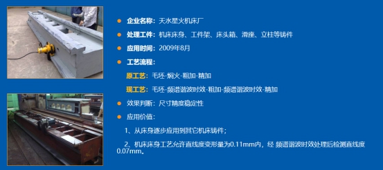 当工件过大、刚性太强时,选用频谱谐波时效进行应力消除,效果显著。频谱谐波时效应用面广,通过傅立叶分析法进行频谱分析,无需扫描,不论工件大小、频率刚性高低、材料特性,均不受激振器的转速范围限制,解决了大中型构件去应力的难题。
